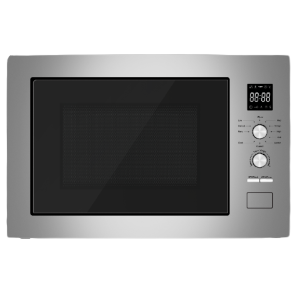 Its premium stainless‑steel finish and full‑size built‑in frame ensure seamless integration into standard kitchen units, while the large viewing window and digital display with control dials make operation intuitive and user‑friendly. The 315mm glass turntable accommodates larger plates and cookware, making it ideal for families and everyday use.