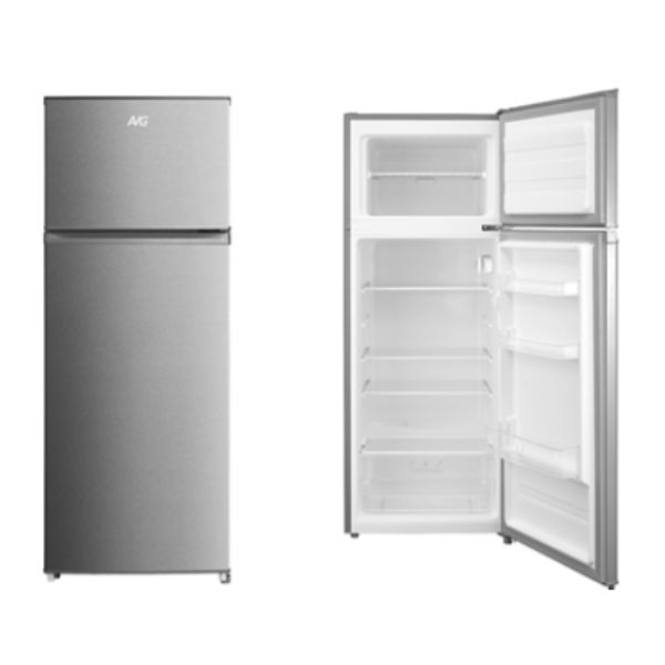 AVG Top‑Mounted Fridge Freezer 204L, Static Cooling, Class E INOX