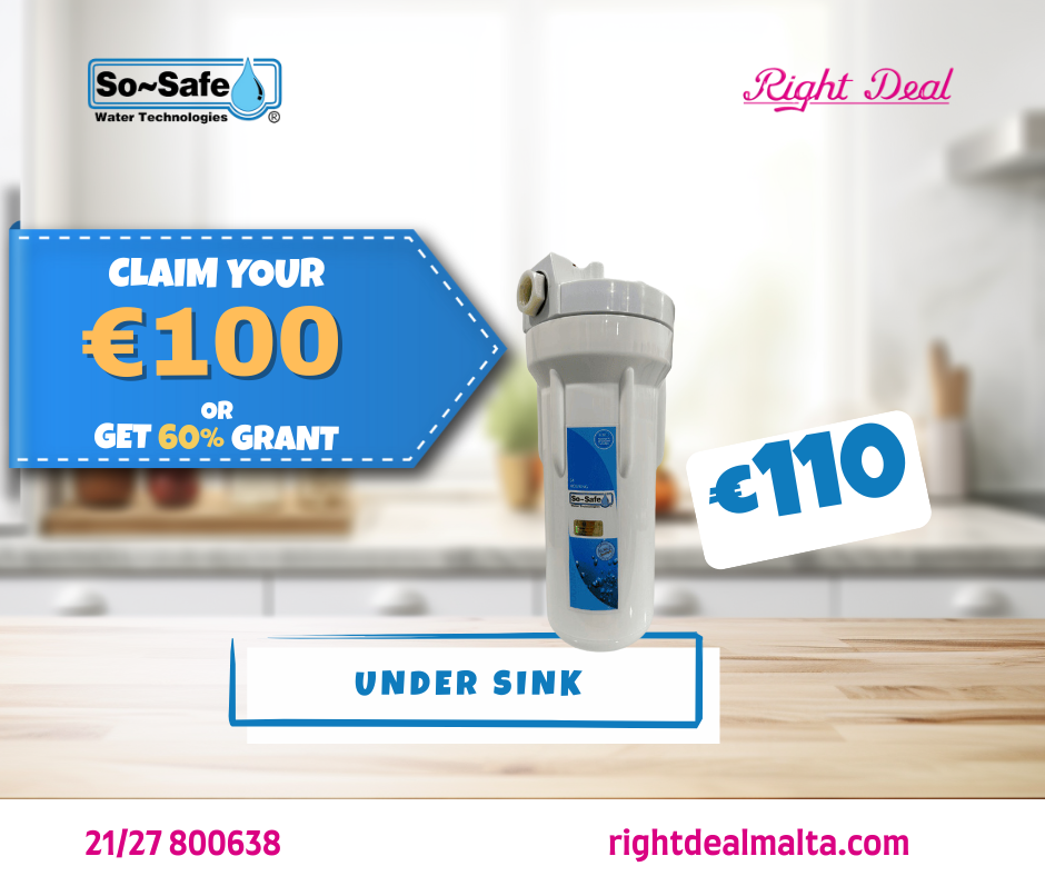 You must purchase from registered retailers to qualify for the voucher or grant. Right Deal Malta is one of Malta’s leading suppliers of approved water filtration systems. you can buy online or visit our showroom in πŸ“ Cospicua and outlet at πŸ“ Petlove Iklin